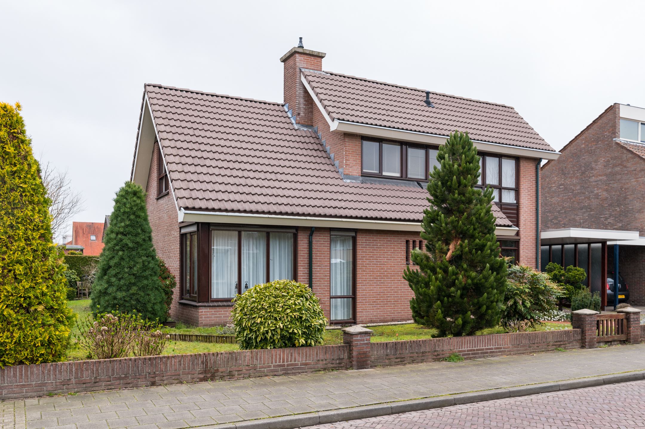 Naast het tuinontwerp is ook een advies uitgebracht voor de kleurstelling van het houtwerk van de woning. De oude kleurstelling oogde gedateerd en de hoofdvraag was dan ook welke kleuren de kozijnen, deuren en boeidelen zouden moeten krijgen. Door diverse opties in te tekenen krijg je een goed beeld van wat de invloed is van de kleurstelling. Uiteindelijk is gekozen om de boeidelen wit te laten voor een frisse sfeer en de overige houtdelen antraciet te schilderen. Wanneer je ook de boeidelen mee zou nemen in antraciet werd het bij deze woning net wat te sober.