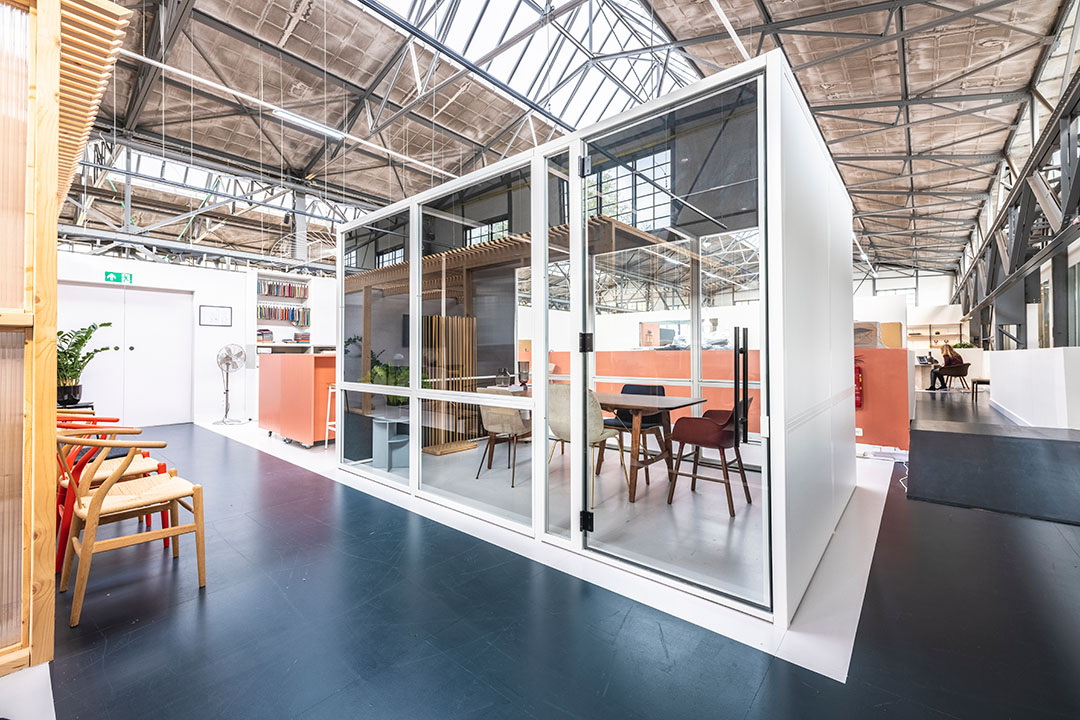 Hoe slim dit product is zie je er niet gelijk aan af. Buiten dat het ontwerp zeer goed in de industriële kantooromgeving past, met zijn ranke industriële stalen lijsten, is de modulaire opbouw en de geautomatiseerde verlichting en ventilatiesysteem perfect op de eindgebruiker afgestemd. De vergaderruimte bestaat uit verschillende staande panelen: een deur en één of meerdere glazen en akoestische panelen. Deze kunnen onderling naar wens worden geconfigureerd. Omdat de panelen uit kleinere componenten bestaan zijn ze eenvoudig te transporteren via de lift.
