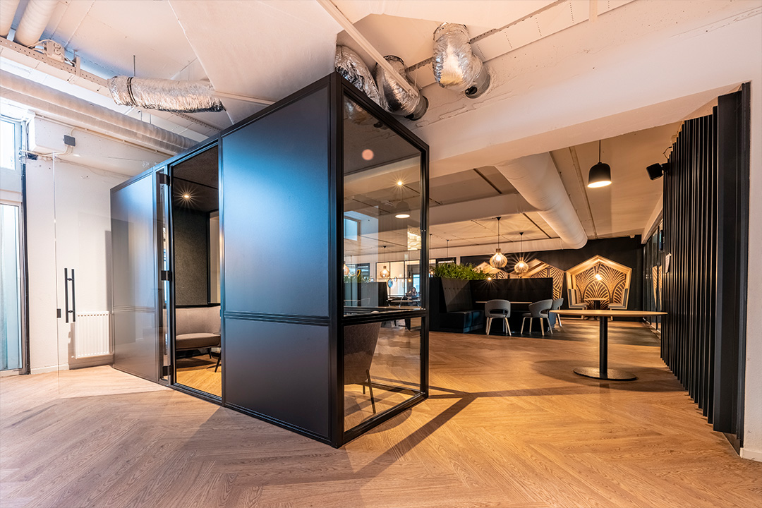 Hoe slim dit product is zie je er niet gelijk aan af. Buiten dat het ontwerp zeer goed in de industriële kantooromgeving past, met zijn ranke industriële stalen lijsten, is de modulaire opbouw en de geautomatiseerde verlichting en ventilatiesysteem perfect op de eindgebruiker afgestemd. De vergaderruimte bestaat uit verschillende staande panelen: een deur en één of meerdere glazen en akoestische panelen. Deze kunnen onderling naar wens worden geconfigureerd. Omdat de panelen uit kleinere componenten bestaan zijn ze eenvoudig te transporteren via de lift.